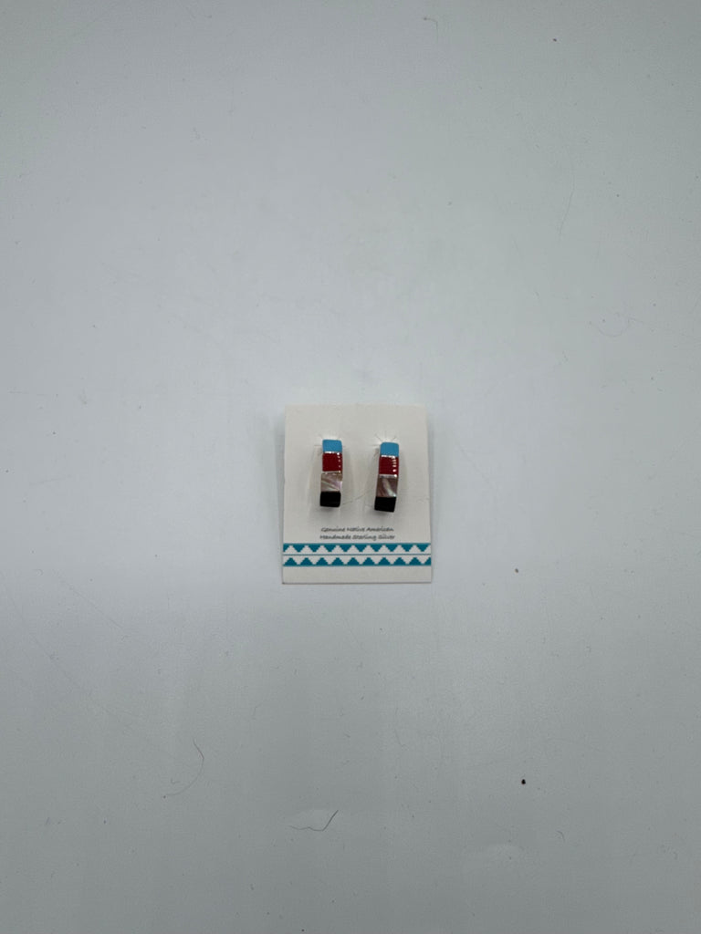 Half Hoop Silver Earrings with Turquoise, Red, Black and Opal Stone