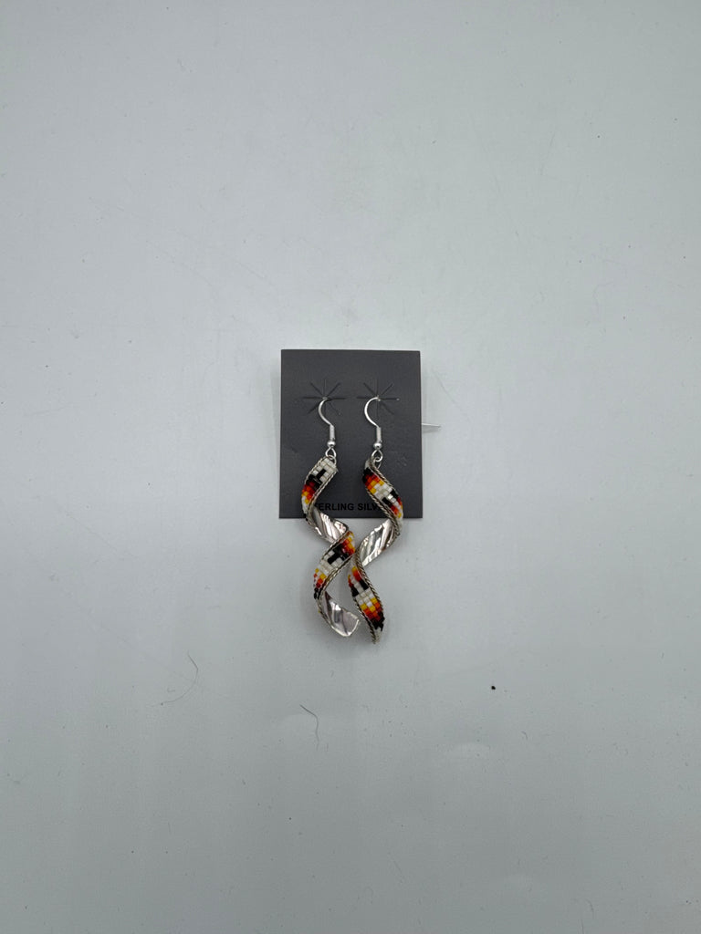 Silver Dangle Beaded Earrings (Red & Yellow)